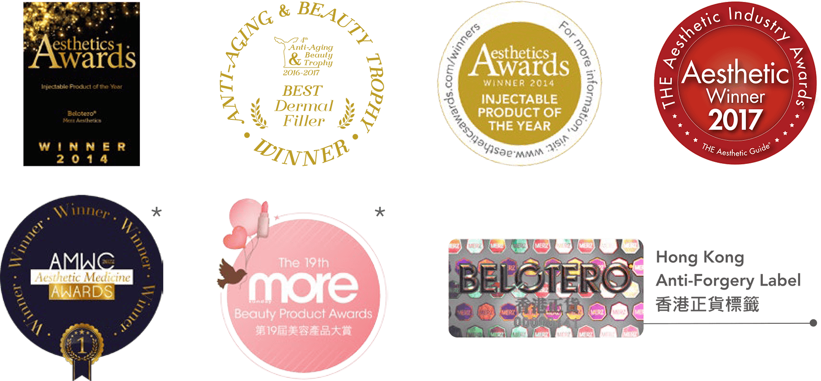 Belotero® 榮獲多個醫學美容獎項,以讚揚這創新的填充技術和其優良的肌膚融合配方1。透過這些獎 項,亦顯出Belotero®深受用家滿意。