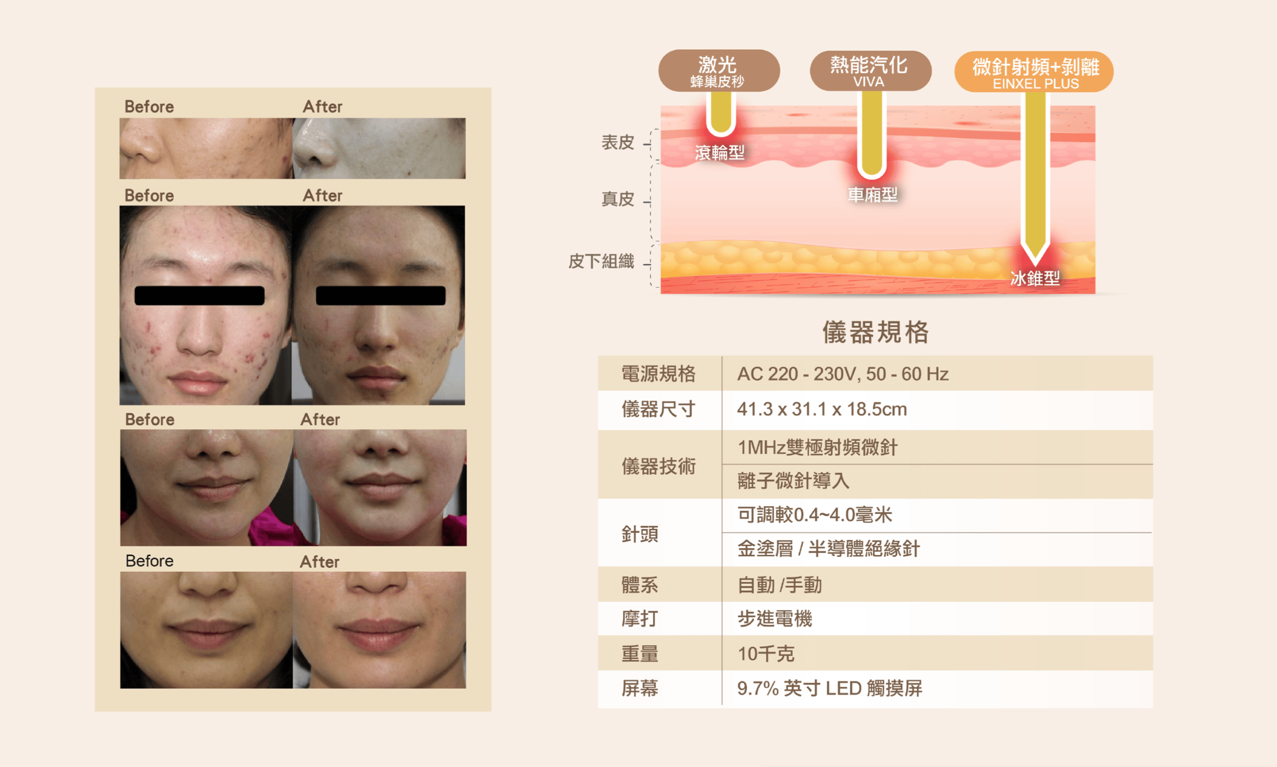 可調教射頻針長度(0 .4mm-4.0mm) ,由淺至深全面刺激膠原增生。