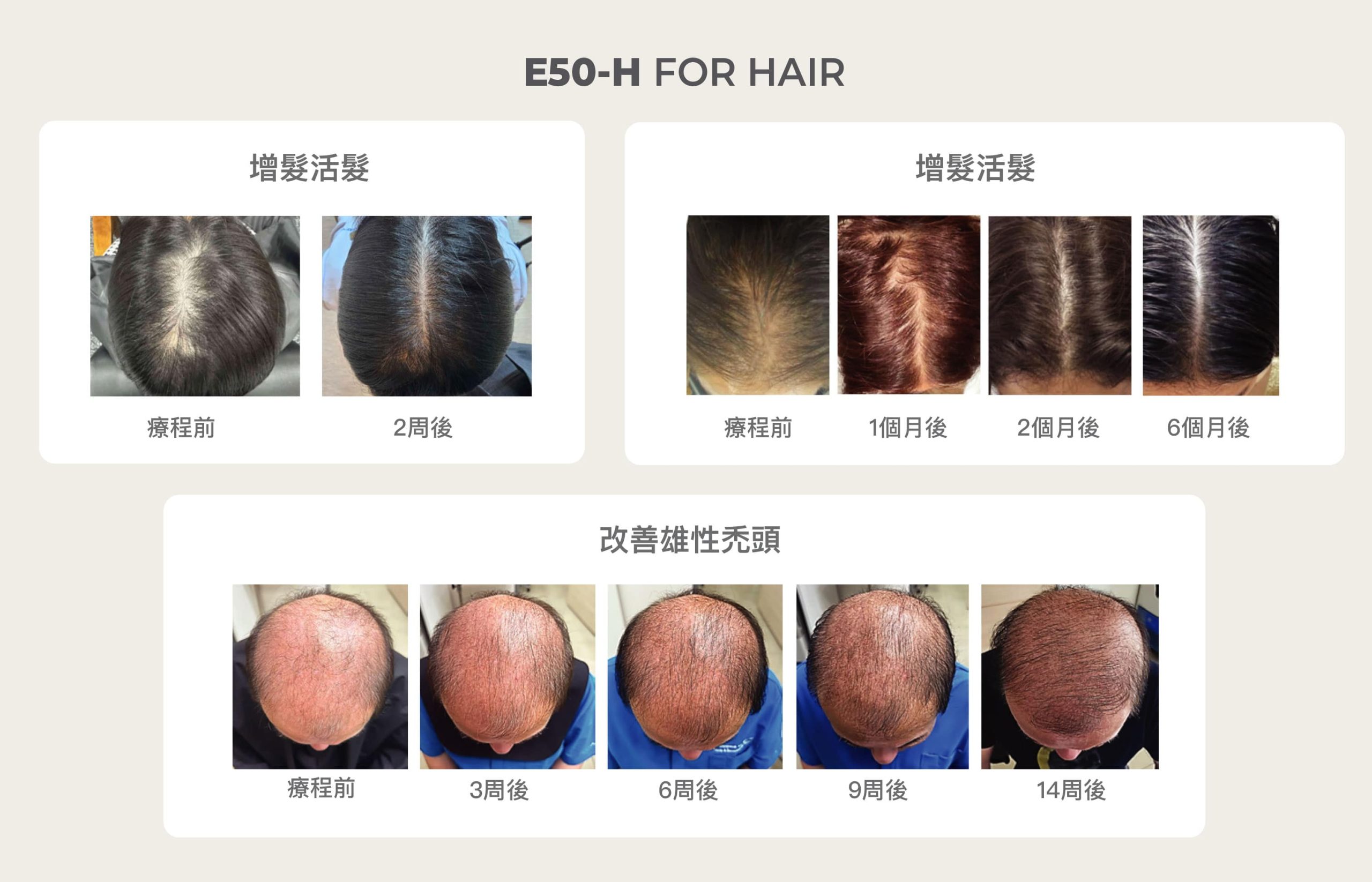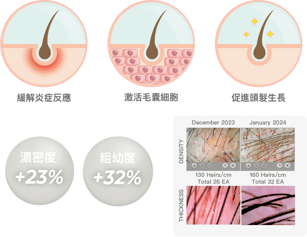 E50-H FOR HAIR 採用三文魚胚胎幹細胞外泌體,能緩解頭皮位置的 炎症反應,從而減少頭瘡及皮屑,同時激活毛囊細胞、促進毛髮再生 及改善脫髮問題。