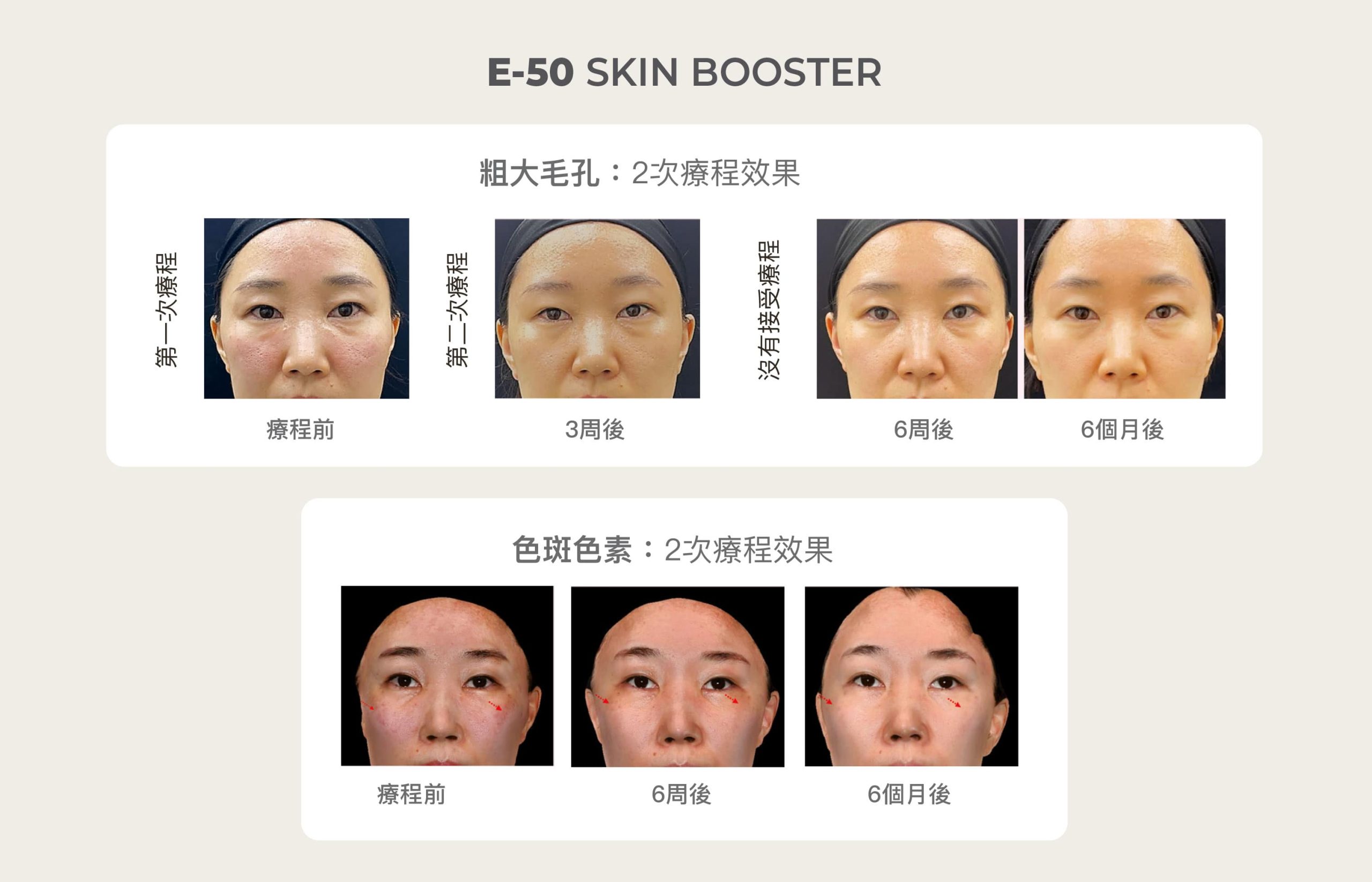 E-50 Skin Booster 採用三文魚真皮幹細胞外泌體,能有效 補濕、 淡化色斑、減淡細紋皺紋、緊緻老化肌膚、促進健康肌膚、收毛孔 及改善膚質。