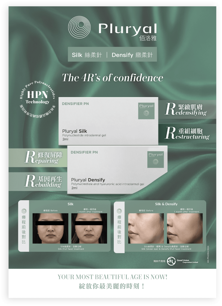 多核苷酸(Polynucleotides,PN)是一種生物基因分子,從三文魚中提取不同鍊長 的DNA片段,經過高溫純化及滅菌處理,形成獨有的三維立體支撐結構。多核苷 酸(PN)的安全性和生物相容性極高,使它可以以最安全的方式在肌膚再生和修復 方面產生重要作用。